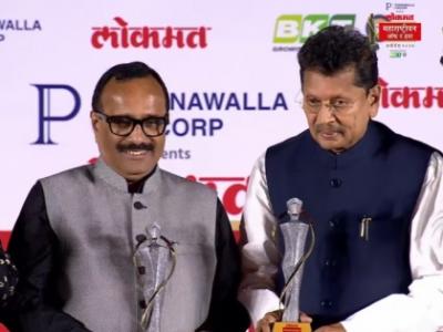 Atul Save and Deepak Kesarkar Receive Influential Politician Award at Lokmat Maharashtrian of the Year Award.