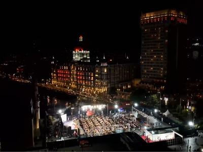 A stunning night view of the illuminated Gateway of India during the Lokmat Maharashtrian of the Year Awards 2026 ceremony.