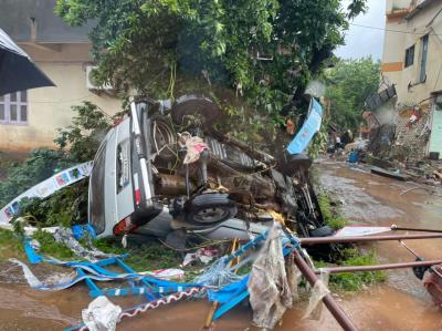Everything like trees, vehicles, motorcycles have been washed away in the flood waters.