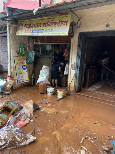 There was up to 10 feet of water in many places in Mahad. Several vehicles were swept away in the water. Many have suffered heavy losses.