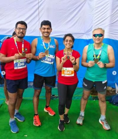 The participants of Vasai Virar Marathon 2024 is all smiles as they strike a pose for the lens with the medals.