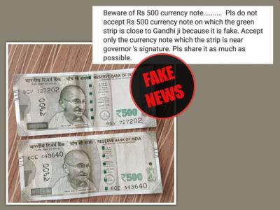 The claim said that one should not take a Rs 500 note which has a green stripe near Gandhiji's photograph and not near the RBI governor's signature. The PIB fact check has found this claim to be false.