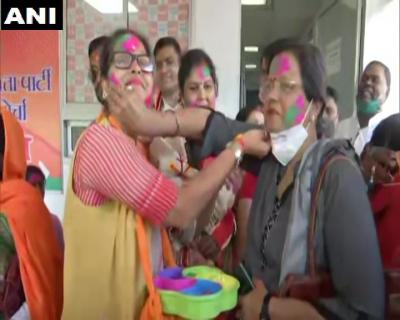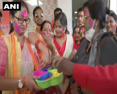 Members of BJP Mahila Morcha celebrating