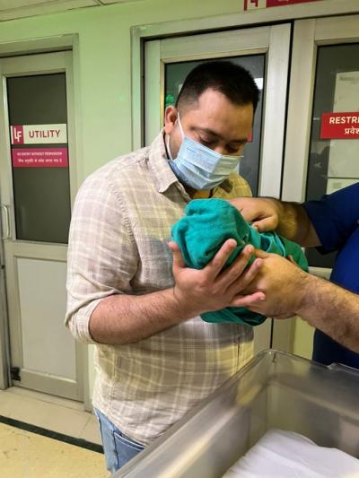 Bihar Deputy Chief Minister and RJD leader Tejashwi Yadav welcomed his first child and shared the news on Twitter on Monday (March 27) along with a photo of him holding his newborn daughter in his arms.