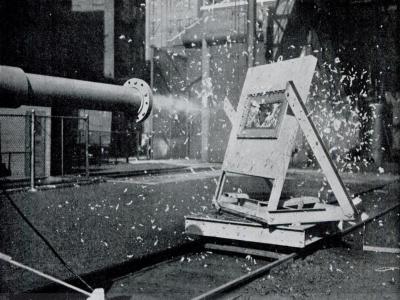 Usually a dead chicken, an artificial bird or a gelatin-based ball is used for this test, but most often a chicken is used. A special air gun or cannon-like device is installed.