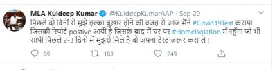 When asked about Kuldeep Kumar's Hathras visit, AAP spokesperson Durgesh Pathak said he is "yet to get in touch with Kumar and he is not sure if he had tested negative and then gone to Hathras or not.""I don't have much information on it yet," Durgesh Pathak told PTI.
