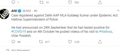 Mirror Now also confronted the AAP legislator as to why he went there. Kumar said on October 4, he was again tested and found to be negative and then only he went to meet the family of the victim.