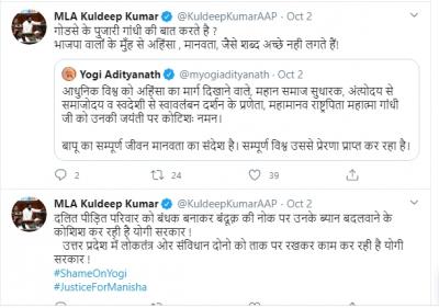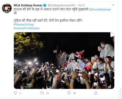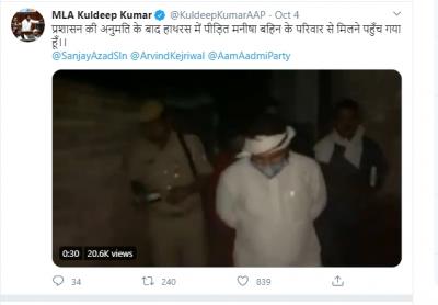 Aam Aadmi Party (AAP) MLA Kuldeep Kumar from Delhi's Kondli constituency was booked for allegedly violating the Epidemic Act in Hathras' Chandpa Police Station. Kuldeep, MLA from Kondali Vidhan Sabha in Delhi, had gone to meet the family on October 4.