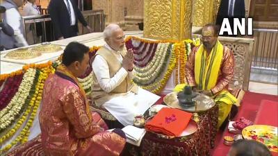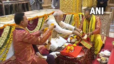 A video - tweeted by news agency ANI - showed PM Modi offering prayers at the iconic Somnath temple. He also greeted the community of priests. Visuals also showed him offering prayers at the shrine.