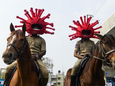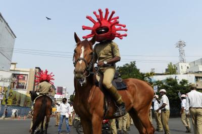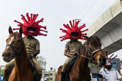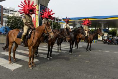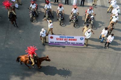 Hyderabad Police wear Coronavirus helmets to spread awareness