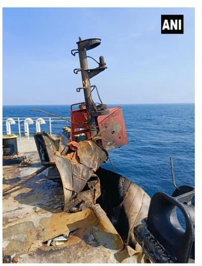 An Indian Navy team is assessing the damage caused by the strike and also investigating how the attack was carried out in the Arabian Sea.