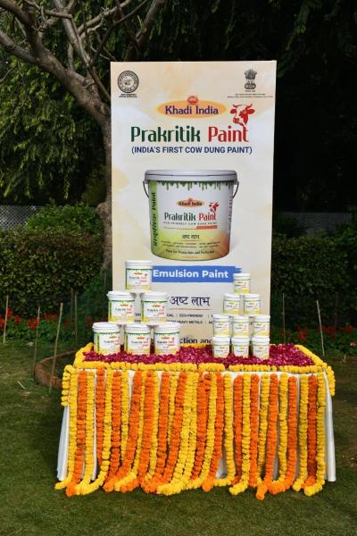 The Khadi Prakritik Paint is based on cow dung as its main ingredient. According to a statement by the Ministry of Micro, Small & Medium Enterprises, Khadi Prakritik paint is cost-effective and odorless and has been certified by Bureau of Indian Standards.