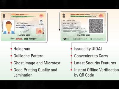 The resident can use their Aadhaar Number/Virtual Identification Number/EID to order Aadhaar card. The Aadhaar card comes with security features like digitally signed Secure QR code, hologram, ghost image, Guilloche pattern etc.