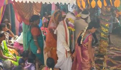 The videos and pictures of Bala Raju’s marriage to both the elder and younger sisters in the same Mandap too got viral on social media platforms.A similar incident was also reported a week earlier in Kollar town of Karnataka state where a man tied knot with two real sisters.