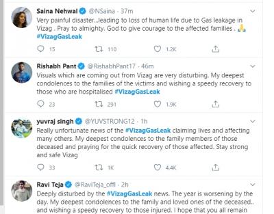 Visakhapatnam is trending on Twitter after the gas leak in Visakhapatnam. Veterans of the country and celebrities from South India have expressed their grief over the tragedy.