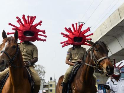 Hyderabad Police wear Coronavirus helmets to spread awareness