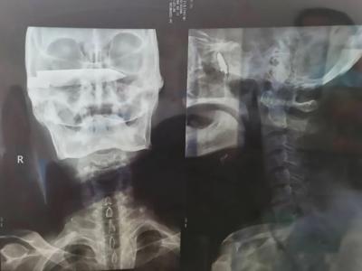 Following a number of CT scans and X-rays, medics reportedly found that the blade was placed at the base of the patient’s skull, lodged against his eye socket and pressing against his optic nerve.