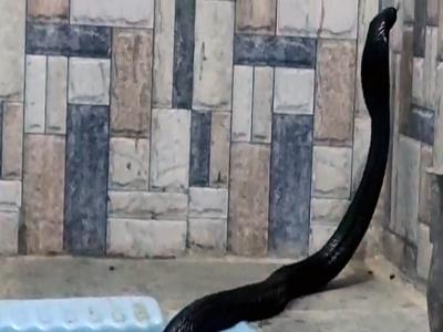 Snake rescuer Rajendra said that as soon as he received information that cobra snake was in the bathroom and kitchen, he immediately reached the spot with the team and and caught the two snakes.