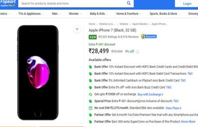 The 32GB storage variant of the Apple iPhone 7 is giving 4 percent off. Talking about iPhone 7 32GB Price, customers can buy this handset for Rs 28,499 (MRP Rs 29,900)