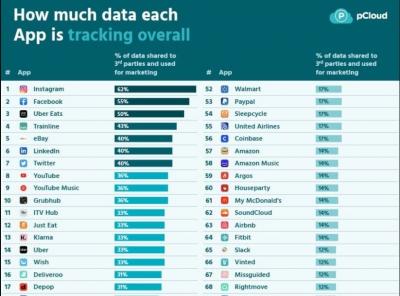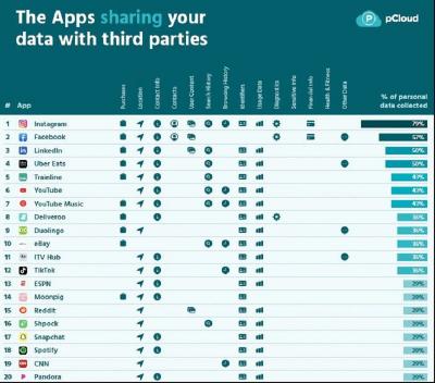 pCloud collected data based on the App Store's new privacy labels. According to their research, Instagram and Facebook app share user data with most third parties.