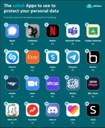 According to pCloud, apps like Signal, Netflix, Clubhouse, Skype, Microsoft Teams and Google Classroom do not collect any user data. This makes it one of the safest apps in the App Store. These can be used without any fear from the users.