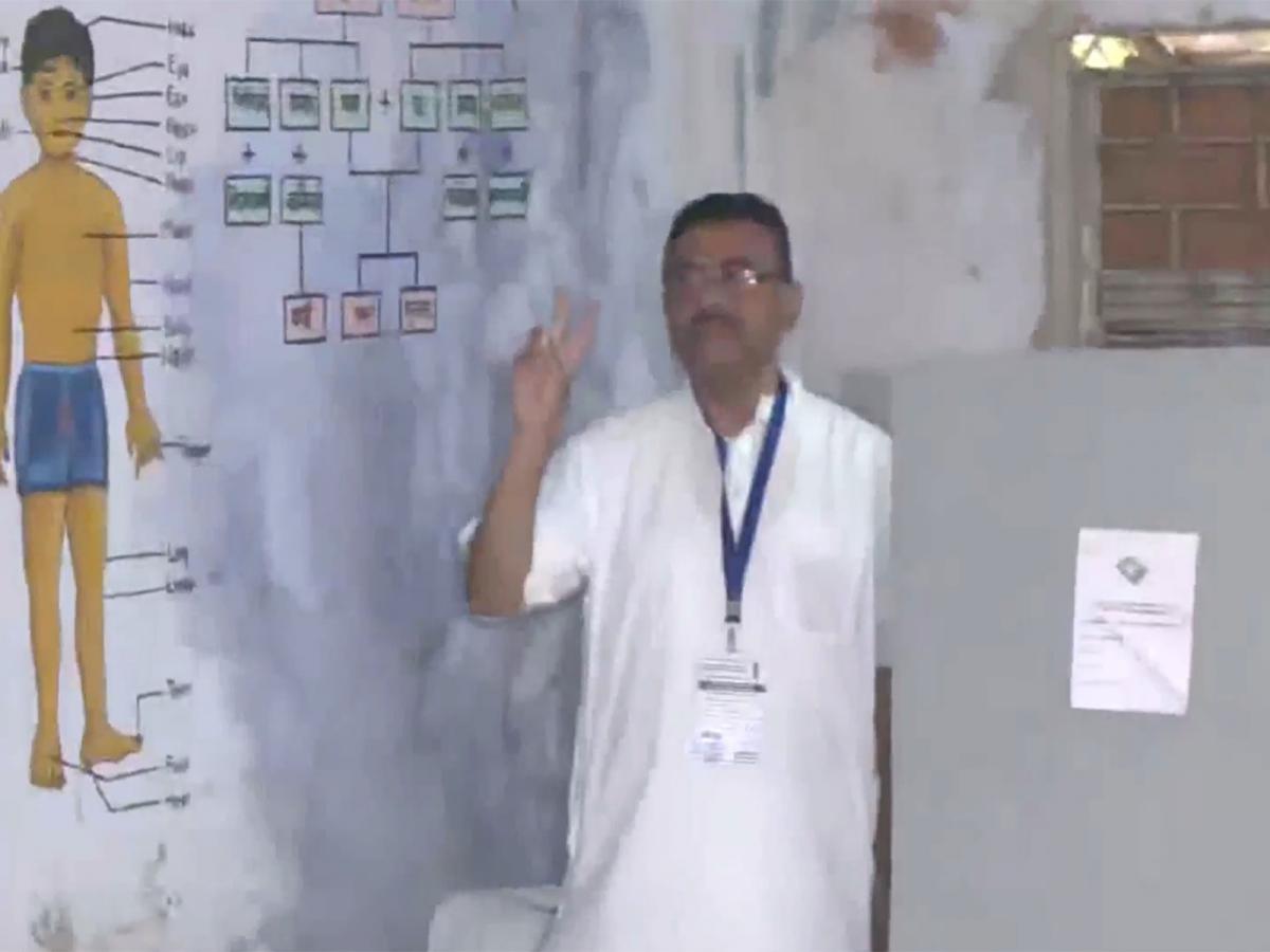Kolkata (West Bengal) [India], April 23 : Bharatiya Janata Party candidate from Nandigram and Bhabanipur Assembly constituencies, Suvendu Adhikari, on Thursday cast his vote at a polling station in Nandigram during the West Bengal Assembly elections.