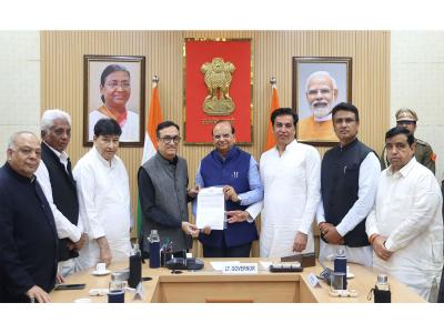 Delhi Lok Niwas said in statement on X, "A delegation of Congress Party comprising Ajay Maken, MP and Treasurer, AICC, Devendra Yadav, President, DPCC and other leaders, today called on the Lt. Governor and presented a memorandum to him with regards to the recent police action on Youth Congress volunteers, owing to their conduct and behaviour at the recently concluded AI Summit."