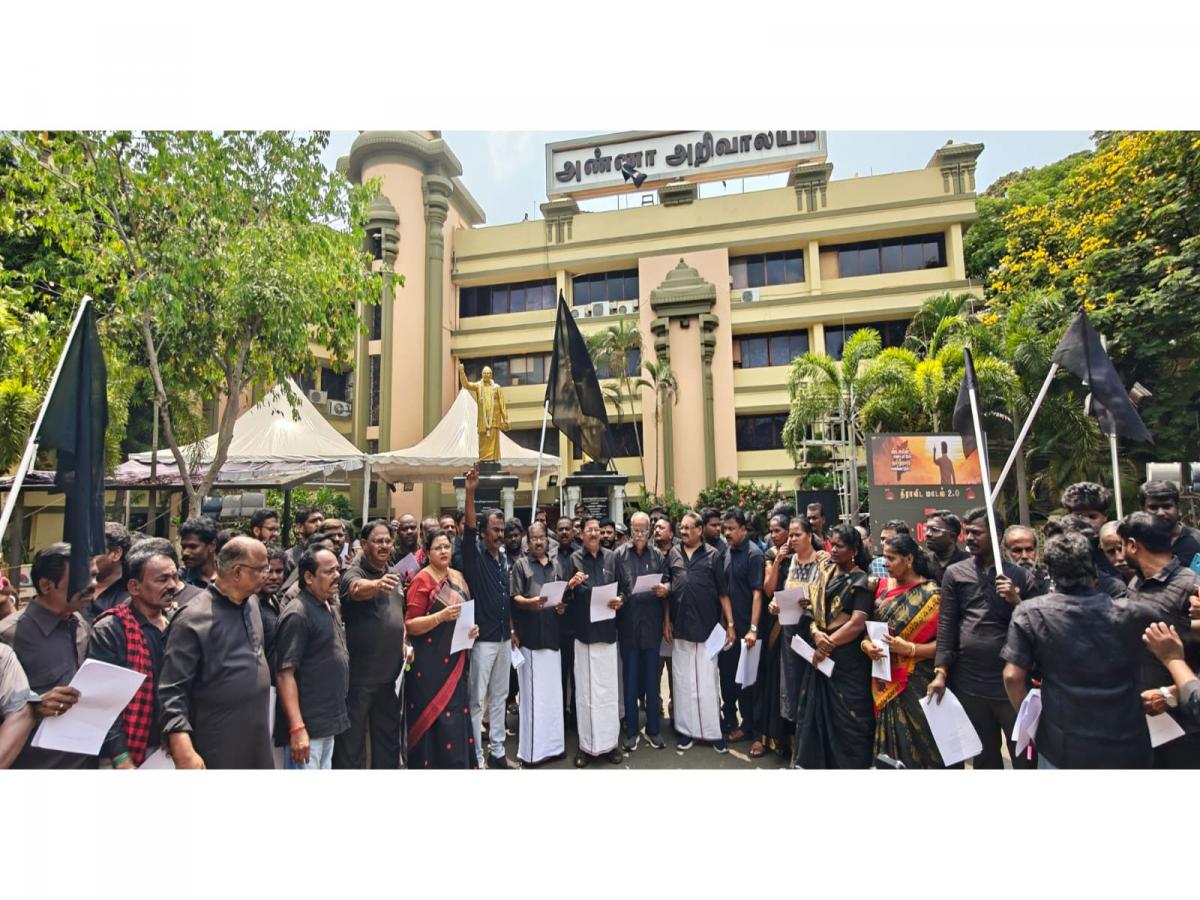 Chennai (Tamil Nadu) [India], April 16 : The Dravida Munnetra Kazhagam (DMK) on Thursday protested against the Centre, raising strong objections to the proposed delimitation bill that aims for a wider political overhaul.