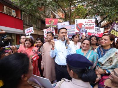 Standing firmly with the women of the state, Sawant led from the front and launched a sharp attack on the opposition alliance, which includes the Congress, AAP, TMC, SP and the Uddhav Thackeray faction. He accused them of pursuing an agenda that is both “anti-national” and “anti-women.”
