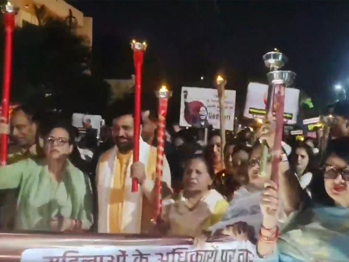 The march, led by the Chief Minister, saw participation from a large number of women, who carried torches as a mark of protest.