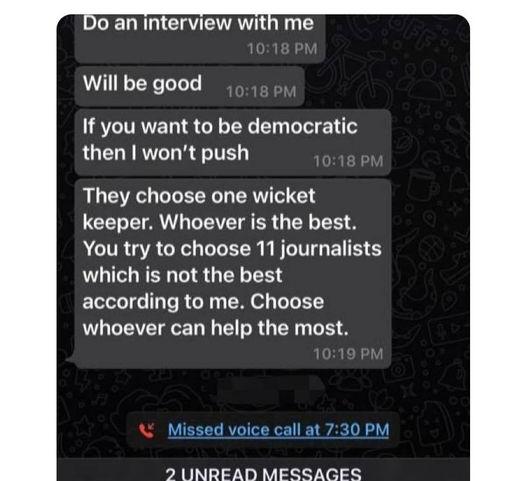 With the tweet, he also shared the screenshot of the journalist who messaged him to do an interview forcefully.