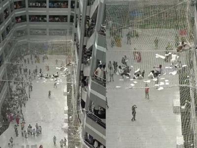 The protestors threw leaflets and posters of their demands on the safety-net and then more than two dozen of them jumped on it from the first floor, even as the Mantralaya staffers and others rushed to witness the sensational development.