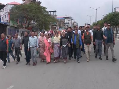 Imphal (Manipur) [India], April 9 : The All Manipur United Clubs' Organisation (AMUCO), along with several civil society groups, on Thursday staged a protest rally in Imphal, demanding justice for victims of the Tronglaobi bomb attack that killed two children and injured their mother.