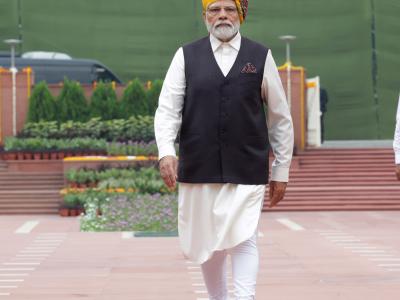 New Delhi, Aug 15 Prime Minister Narendra Modi consistently wears impeccable traditional attire during national celebrations. Displaying enthusiasm and patriotic hues, he, renowned for his flamboyant and vivid turbans, opted for a yellow Rajasthani Bandhej Safa (headgear) adorned with colourful stripes and a long trail on the occasion of the 77th Independence Day.