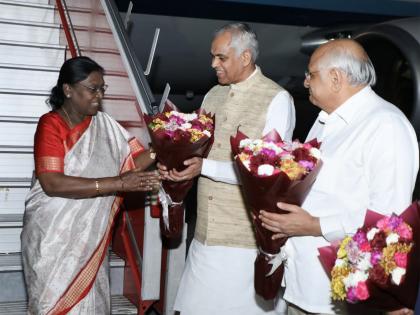 Gandhinagar (Gujarat) [India], April 13 : President Droupadi Murmu arrived at Ahmedabad Airport as part of her three-day visit to Gujarat, where she was warmly welcomed by Governor Acharya Devvrat, Chief Minister Bhupendra Patel, and Deputy Chief Minister Harsh Sanghavi, a release said.