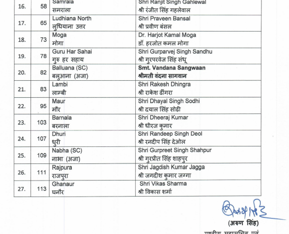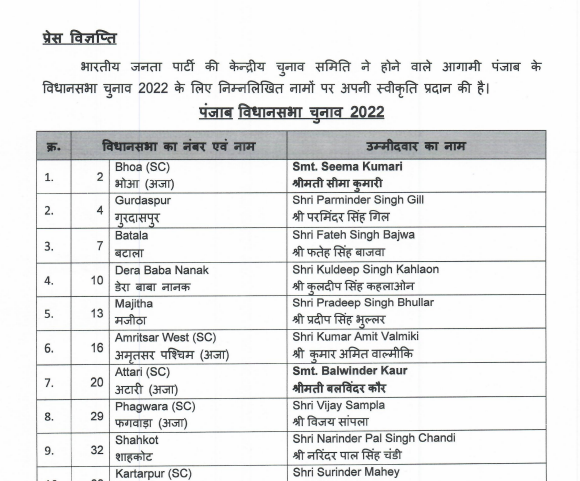 Punjab Assembly Elections 2022: BJP announce its 27 candidate names for Punjab polls