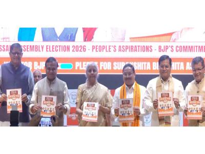 Guwahati (Assam) [India], March 31 : Bharatiya Janata Party (BJP) on Tuesday released its 'Sankalp Patra' (manifesto) for the 2026 Assam Assembly elections in Guwahati.