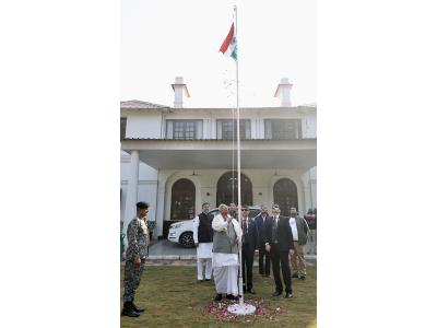 Mallikarjun Kharge unfurled the national flag at his residence, 10, Rajaji Marg, on the occasion.