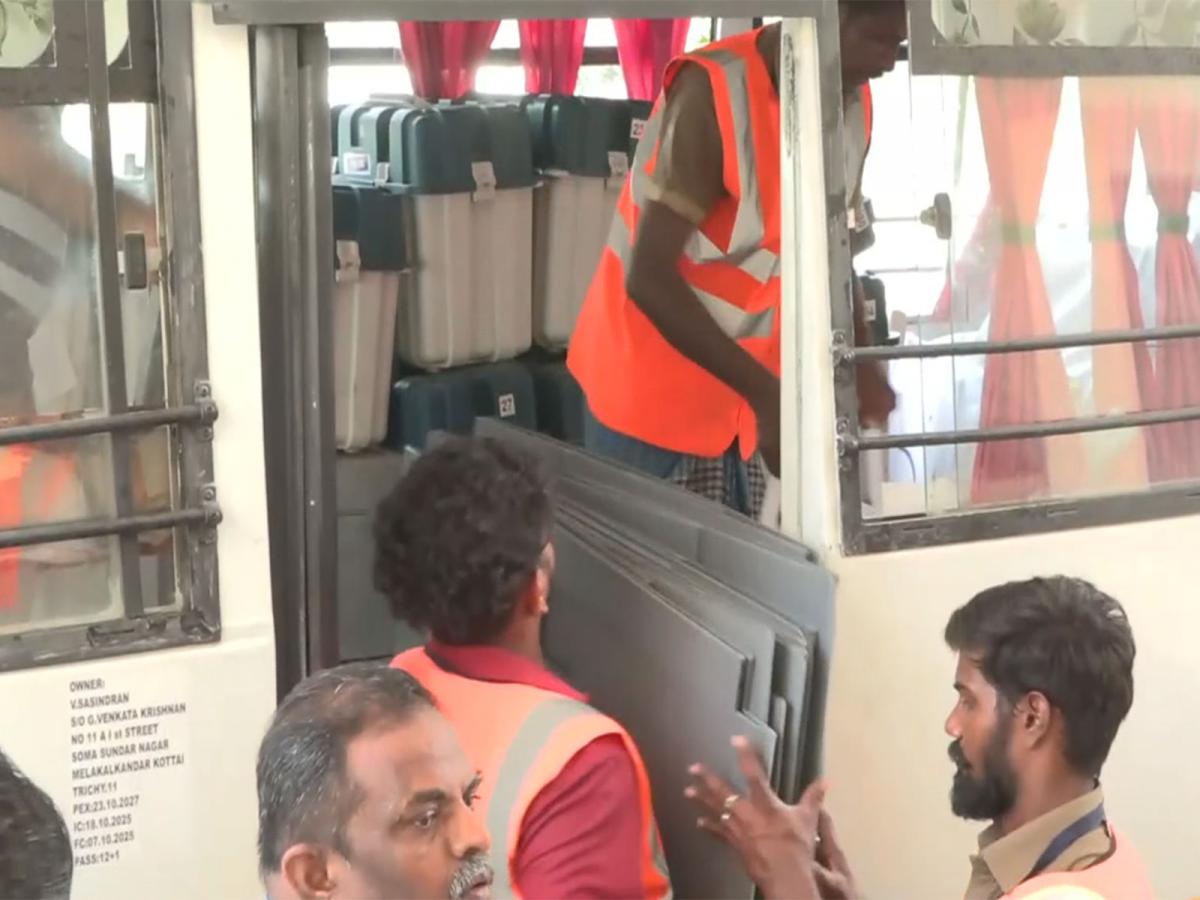 Tiruchirappalli (Tamil Nadu) [India], April 22 : With just a day left for polling in the Tamil Nadu Assembly elections, large-scale preparations are underway in Tiruchirappalli district, with Electronic Voting Machines (EVMs) and other polling materials being transported to various booths in the constituency amid tight security arrangements.