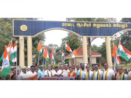 Ariyalur (Tamil Nadu) [India], February 5 : Congress party members in Ariyalur district on Tamil Nadu staged a protest ...