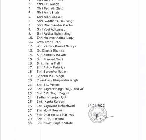 The list includes names like Narendra Modi, JP Nadda, Rajnath Singh, Amit Shah, Nitin Gadkari, Hema Malini, and many more, see the list here