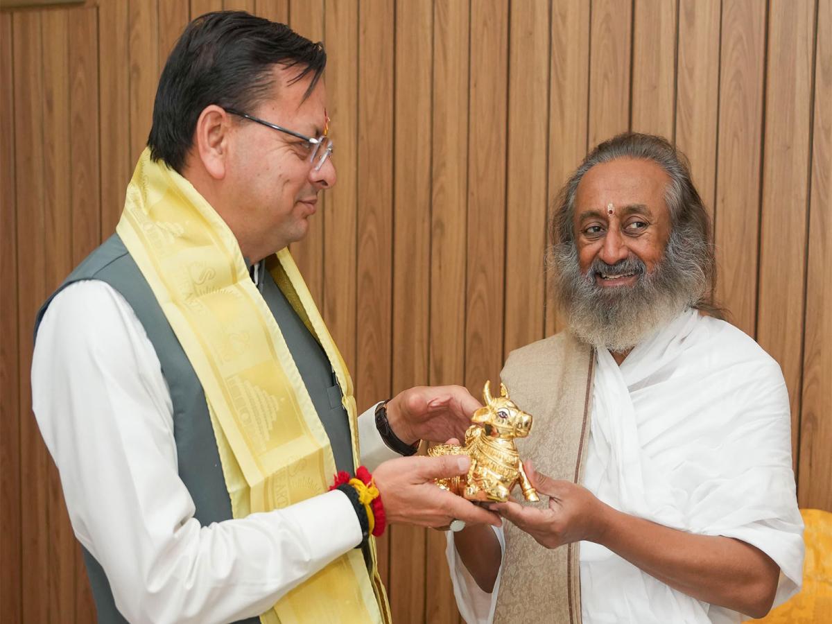 "Today I met Sri Sri Gurudev Ravi Shankar and sought his guidance. He is continuously advancing numerous social causes in the field of religion and spirituality. He is constantly guiding people onto the right path. Millions of people across the country are inspired by him and are working. May all our young people awaken patriotism within them and work for society," said Dhami.