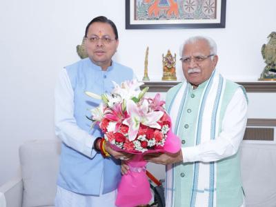 New Delhi [India], April 4 : Uttarakhand Chief Minister Pushkar Singh Dhami met Union Minister for Power, Housing and Urban Affairs Manohar Lal Khattar here on Saturday.