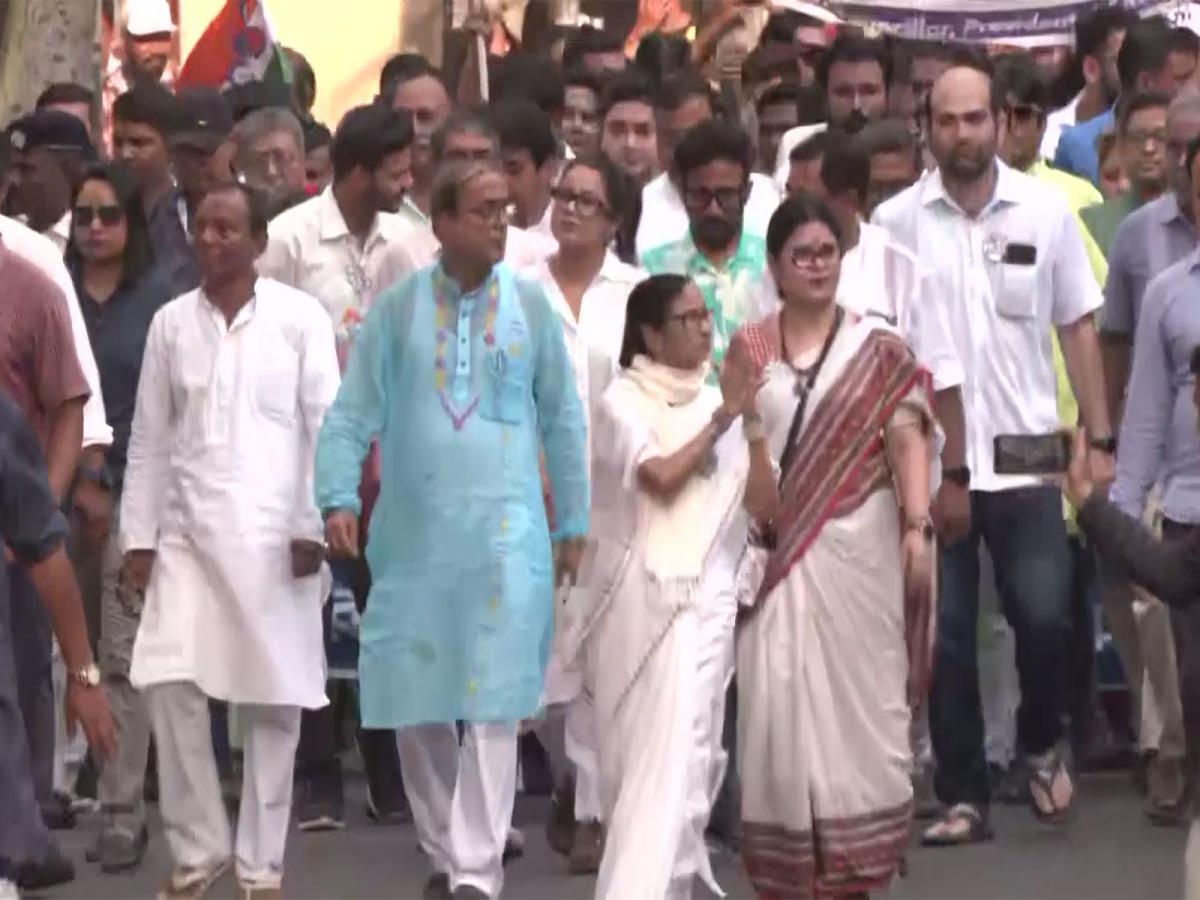 Kolkata (West Bengal) [India], April 26 : West Bengal Chief Minister Mamata Banerjee on Sunday held a padyatra in Bhabanipur Assembly constituency and interacted with the people.