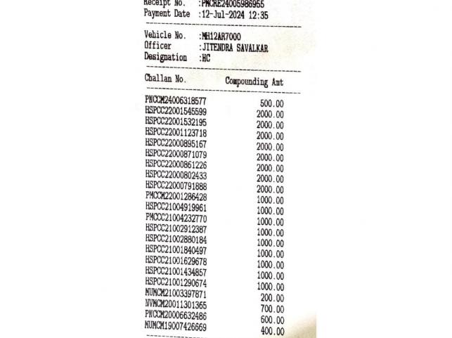 The Audi car used by Pooja Khedkar has 22 traffic violations registered at the Pimpri Chinchwad Traffic Branch. A fine of ₹27,400 was paid on July 12.