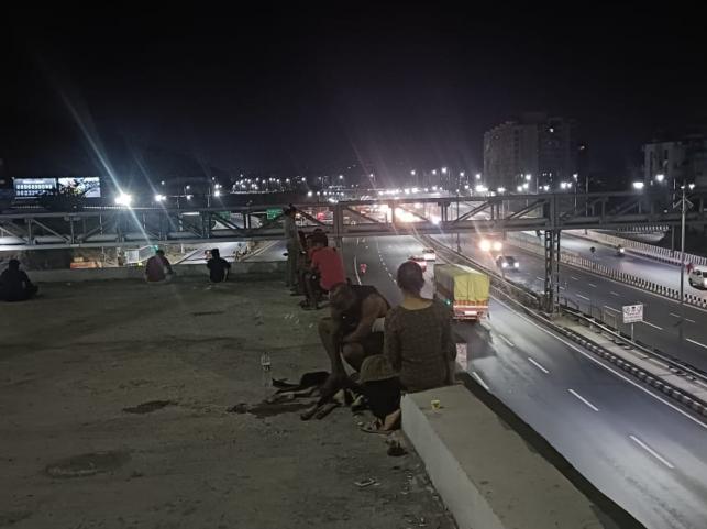 The newly constructed Chandani Chowk flyover, built to ease traffic on the busy Mumbai-Bangalore highway, has become a place for casual sit-outs for the public. People are observed risking their lives by sitting in the open space, which lacks safety railings.