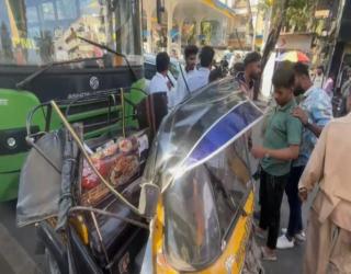 Pune Accident: PMPML Bus Rams Auto-Rickshaw on Karve Road, Driver and Two Passengers Seriously Injured (VIDEO)