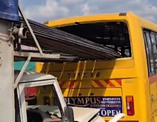 Pune School Bus Accident: Steel Bars From Pickup Truck Pierce Vehicle; 8 Children Injured (VIDEO)