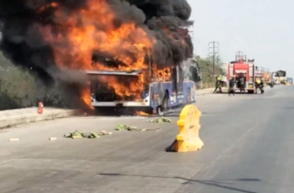 A serious mishap was narrowly averted on Tuesday after a bus operated by the Pune Mahanagar Parivahan Mahamandal Limited (PMPML) on the Nigdi to Mahalunge MIDC route suddenly caught fire inside the Chakan Industrial Estate. The incident took place close to Mahendra Company, triggering alarm across the bustling industrial area. Within a short span, the flames engulfed the entire vehicle, reducing it to a shell. Fortunately, all passengers were evacuated in time, preventing any injuries. The dramatic episode unfolded rapidly, drawing attention from workers and commuters in the vicinity as thick smoke billowed into the sky.
