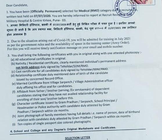 As Waghere had submitted a written complaint at the Southern Command Military Intelligence the Pune Police along with the Military Intelligence officers arrested Sandeep Gurav for allegedly duping Waghere for Rs 29,10,000 by providing them with a fake joining letter with a fake stamp of OIC, Military Hospital, Kirkee. Sandeep Gurav is in Khadki Police Custody and further probe is underway.